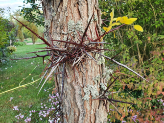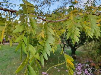 Gleditsia: févier (Traité des arbres et arbustes qui se cultivent en France en ..., page 266, par Henri-Louis Duhamel Du Monceau, 1755). Triacanthos, a: à trois épines (Tableau encyclopédique et méthodique des trois règnes de la ..., page 447, par Jean Baptiste Pierre Antoine de Monet de Lamarck, 1791).